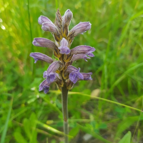 The taxonomic classification of Phelipaea tournefortii Desf. is as follows. - Kingdom: Plantae, Phylum: Tracheophyta, Class: Magnoliopsida, Order: Lamiales, Family: Orobanchaceae, Genus: Phelipanche, Species: Phelipanche purpurea